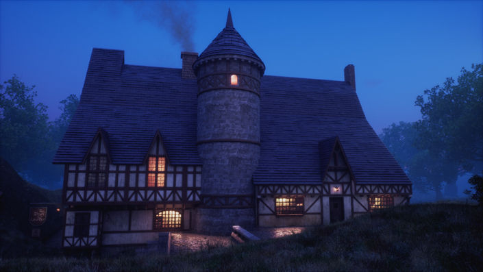 This environment was made as part of the final project of the technique in 3D animation and image synthesis of Bois-de-Boulogne college. It's based on a concept by artist Klaus Pillon named The Dran and Courtier Inn https://www.artstation.com/artwork/oOB3xz. Each element was modeled in Maya and some elements, such as the pieces of wood, were modeled in high resolution in ZBrush. The trees, on the other hand, were made in SpeedTree. The majority of the textures were done in Substance Painter and the rendering was done in real time in Unreal Engine. Some textures, such as window textures, were created directly in Unreal.